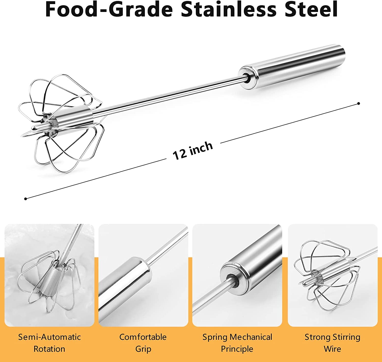 Batidor Semiautomático Manual de Acero Inoxidable Para Hornear, Batir Huevos y Leche - 11.8 Pulgadas