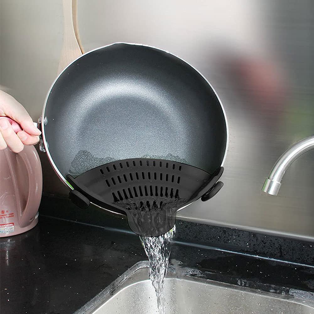 Colador perfecto y seguro: Se fija fácilmente a la olla con dos clips resistentes que mantienen la comida dentro durante el colado. ¡Adiós a trasvasar alimentos! 🍲🔒