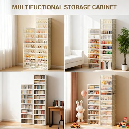 Puertas transparentes con fuerte cierre magnético que protegen del polvo y permiten ver el contenido fácilmente.
