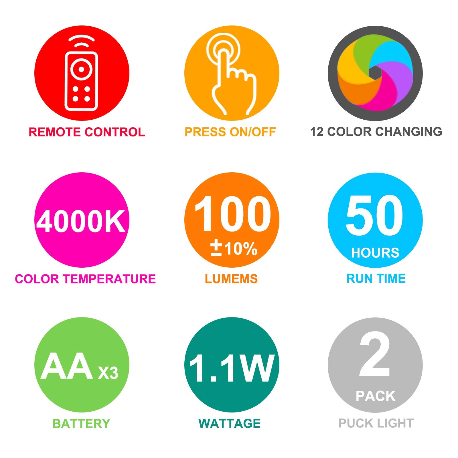 - 12 colores RGB que cambian y LED superbrillantes: LED superbrillantes mejorados de 100 lúmenes con iluminación blanca cálida y 12 colores RGB cambiantes.