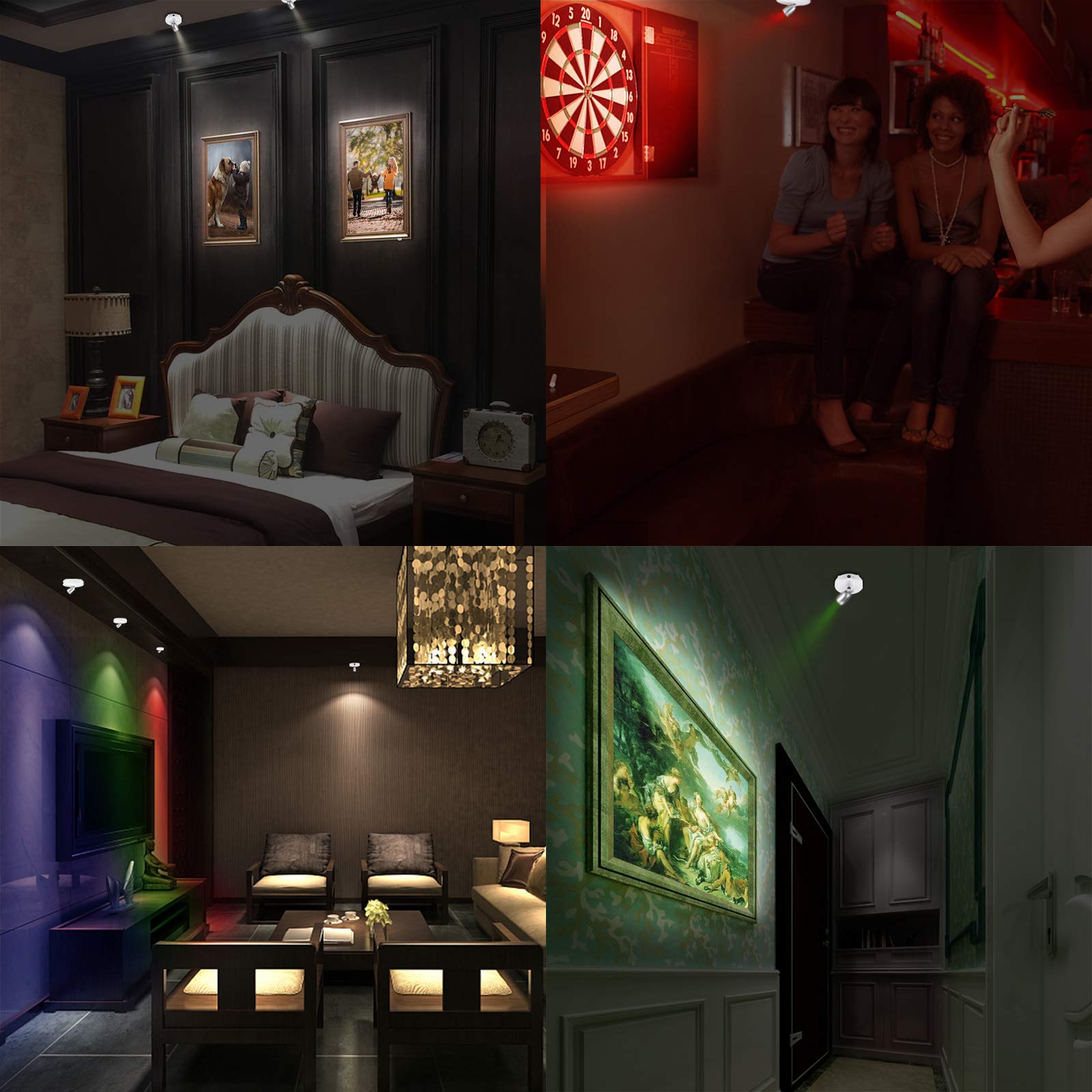 * La luz se puede utilizar en interiores en cualquier lugar como baño, pasillo, cocina, armario, sótano, cabaña, despensa, armario, estantería, exhibición de joyas, estante decorativo, dormitorio, almacén, sala de juegos, cochera, entrada, techo, pared o plantas destacadas, imágenes, estatua, pesebre, retratos, repisa de chimenea, pieza de arte de metal, escultura, curiosidad, barco modelo, diana, pintura de pared, pantalla de cristal, Halloween, árbol de Navidad, decoración de adornos de Navidad, luces de lectura, luces de disco, luces de imagen, crea estado de ánimo. iluminación y perfecto para spot. Iluminación de obras de arte, luz decorativa, iluminación de acento, etc.