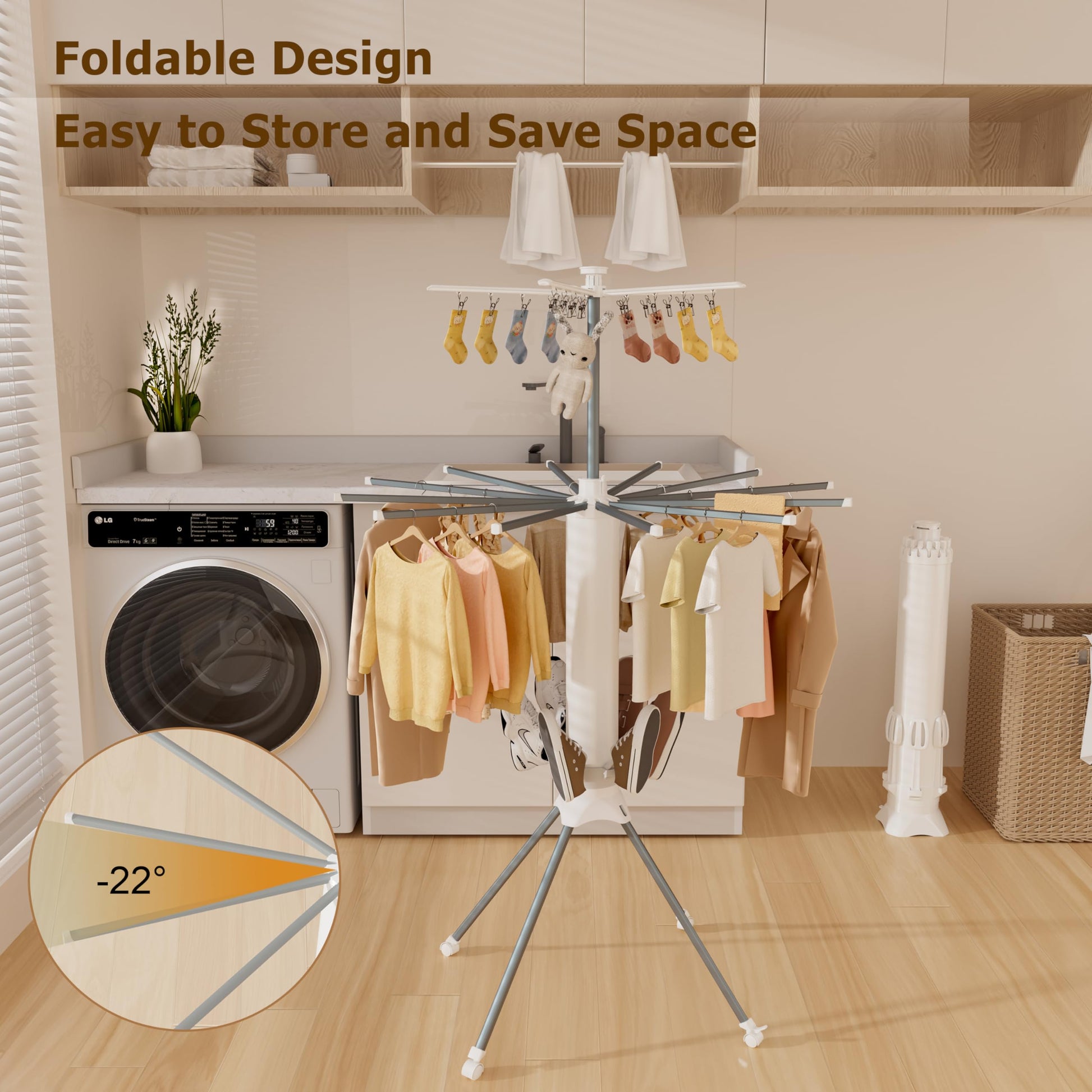 - Tendedero multifuncional: el tendedero de torre está equipado con un tendedero extraíble. Puedes sacar parte de la tendedero según sea necesario y ajustar el tendedero para que puedas responder de forma flexible a las necesidades de diferentes rincones de tu casa, te ofrece la máxima flexibilidad, soporte para secadora de ropa sin importar dónde quieras secar tu ropa