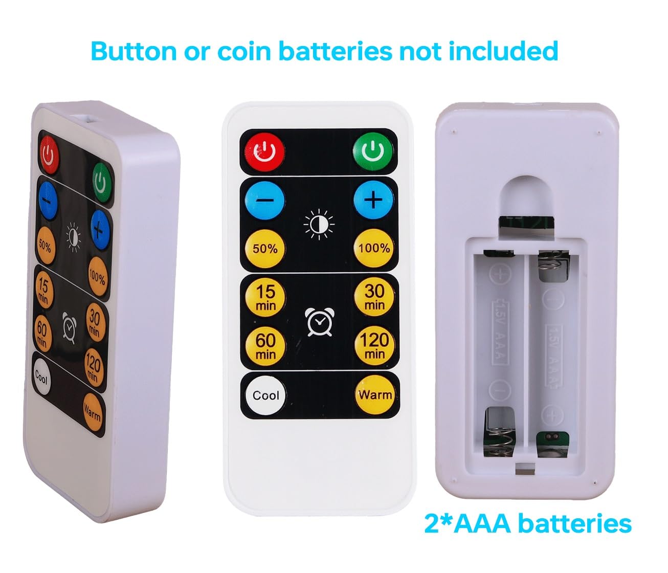 Funciona con 3 pilas AA (no incluidas) y no requiere cableado ni electricidad. Incluye bombilla LED E27 y control remoto para máxima comodidad y practicidad.