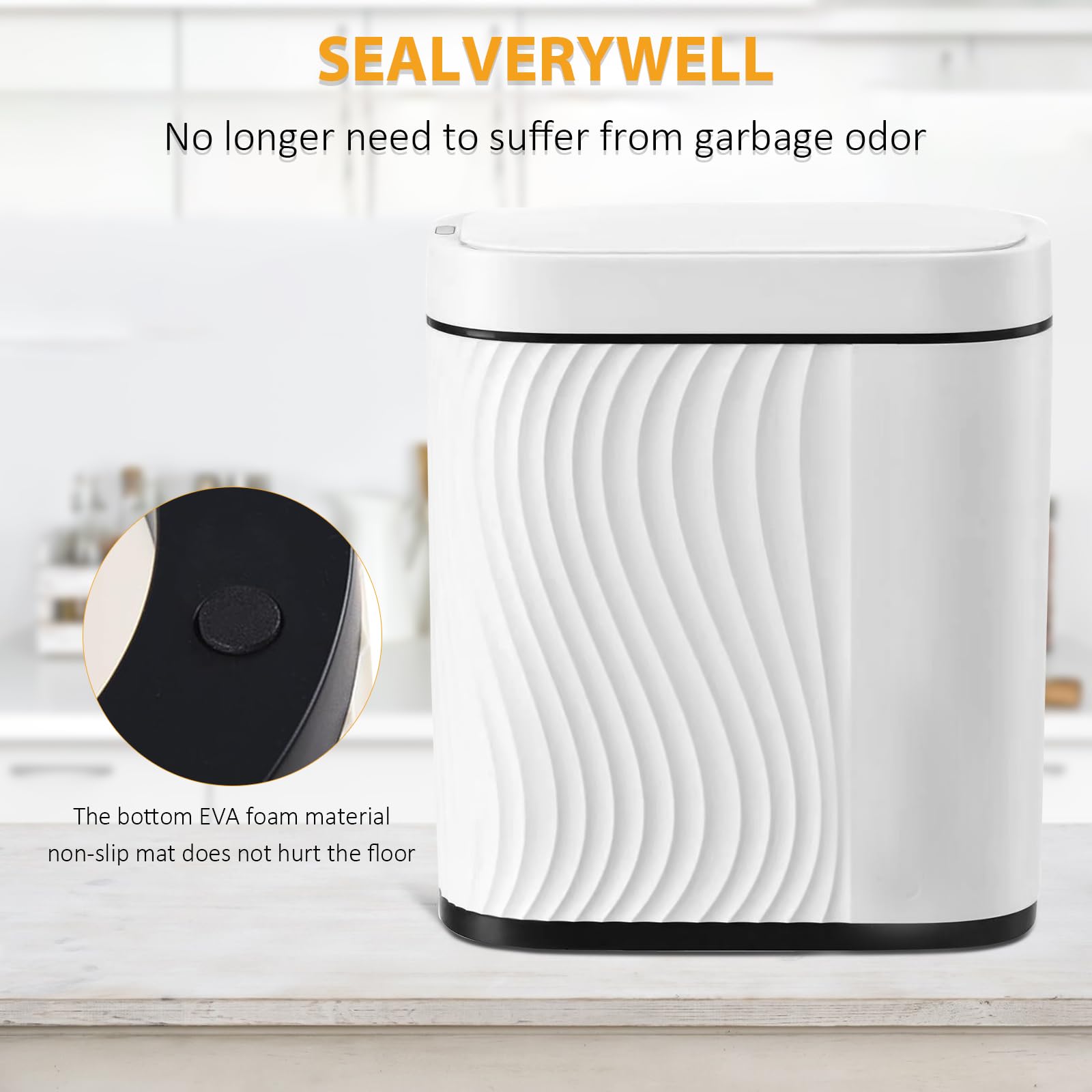 - Gran capacidad y material duradero — Este papelera está hecha de plástico ABS resistente, fuerte y duradero para un uso prolongado. Será su cubo basura inteligente ideal. Ya sea que tenga un baño pequeño o una cocina amplia, este cubo basura automático es lo suficientemente flexible para adaptarse a cualquier espacio.