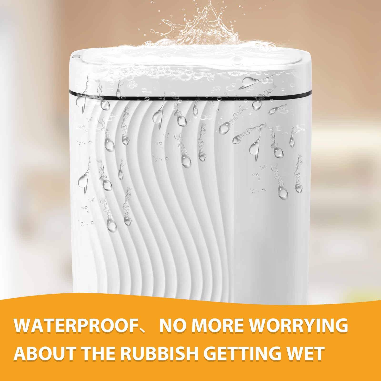 - Diseño impermeable y resistente a la humedad — Nuestros cubos basura con sensor están fabricados con materiales de alta calidad y construcción avanzada. Incluso en ambientes húmedos y a prueba de salpicaduras, la papelera baño conserva la función sensible de encendido/apagado de la tapa. No teme las salpicaduras de agua y no hay problemas de fallos de contacto. Por lo tanto, es muy adecuada para aseos, baños, salones y dormitorios.