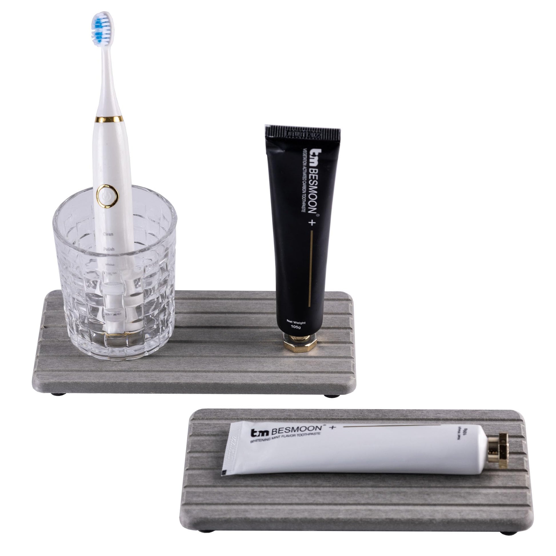 - Hecho de barro natural de diatomea y fibra vegetal, los pequeños agujeros dentro de la diatomita permiten una increíble absorción de agua. Pueden absorber el agua y secarse en pocos minutos. Hace que la encimera del baño esté más seca y ordenada.