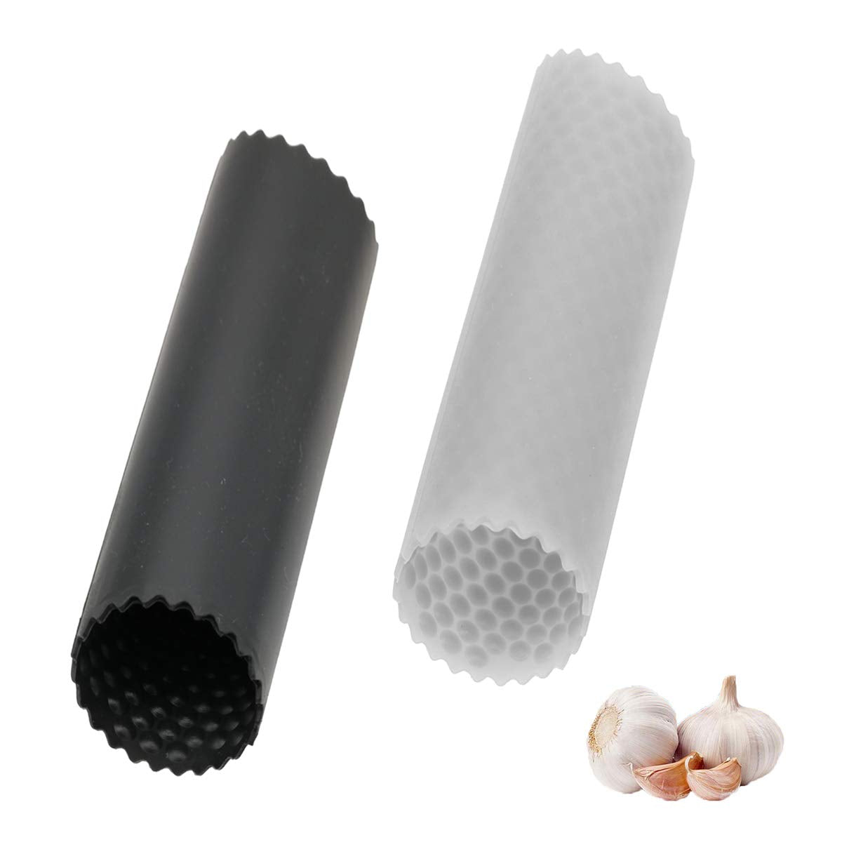 - El pelador de ajo está hecho de caucho de silicona de grado alimenticio, a prueba de moho, sin sensación de decoloración y cómodo.