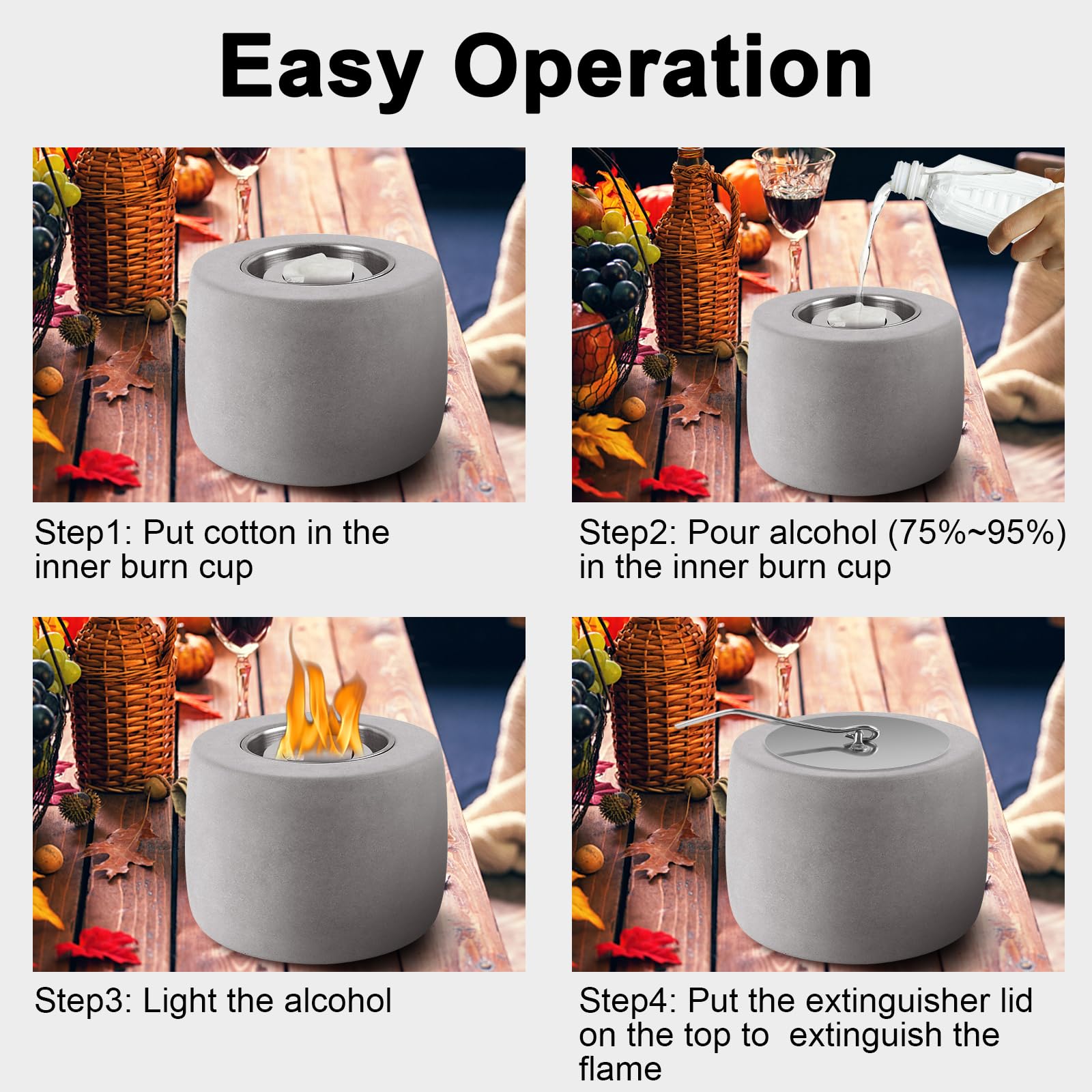 - Múltiples medidas de protección: Equipado con copa de alcohol de doble capa para evitar fugas y reducir la salida de calor; Una cubierta de extintor para extinguir incendios en la chimenea de mesa de forma segura y rápida.