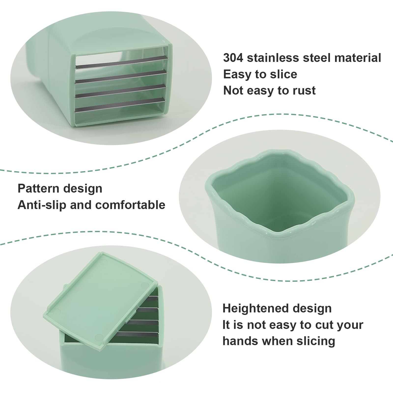 Fabricados con acero inoxidable 304 y PP libre de BPA, estos cortadores son duraderos, no tienen bordes filosos y son totalmente seguros para tus manos.